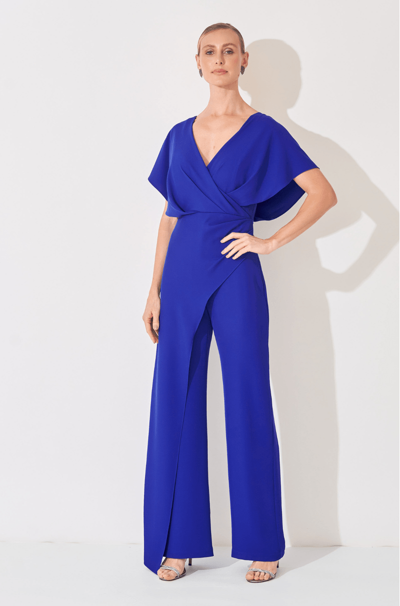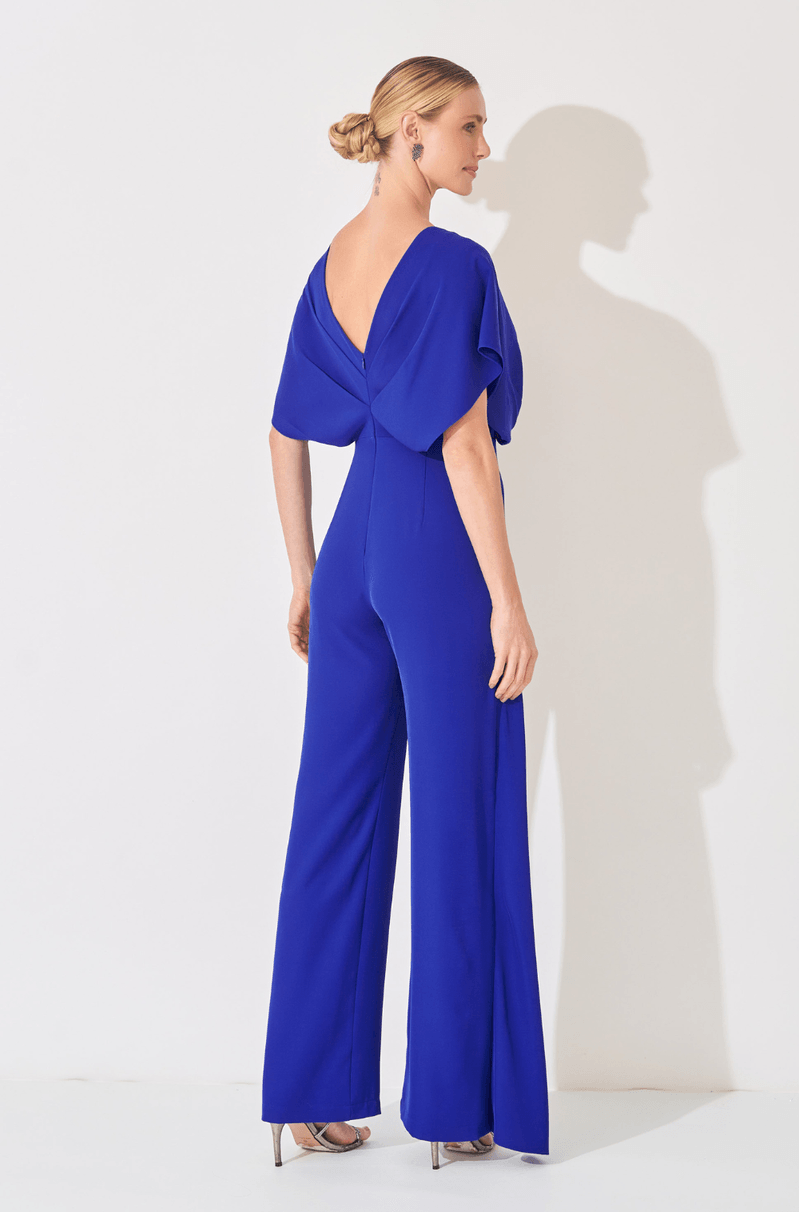 O macacão longo em crepe de alfaiataria combina sofisticação e modernidade em uma peça de caimento impecável. O decote transpassado com manga morcego cria uma silhueta fluida e contemporânea, enquanto as pregas que partem da cintura conferem leveza e movimento elegante ao visual.