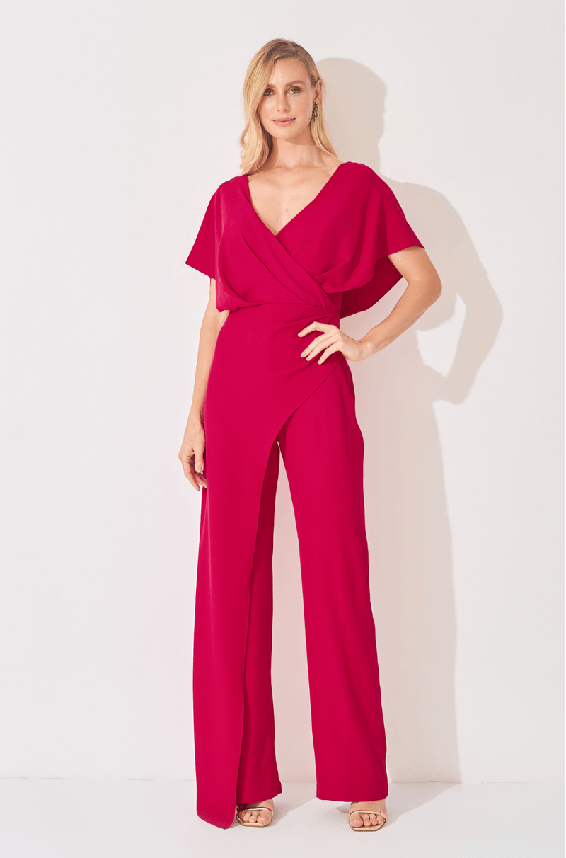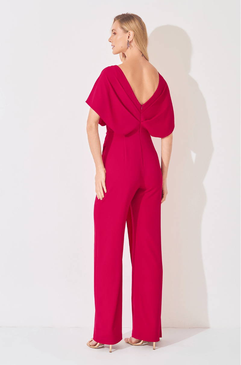 O macacão longo em crepe de alfaiataria combina sofisticação e modernidade em uma peça de caimento impecável. O decote transpassado com manga morcego cria uma silhueta fluida e contemporânea, enquanto as pregas que partem da cintura conferem leveza e movimento elegante ao visual.