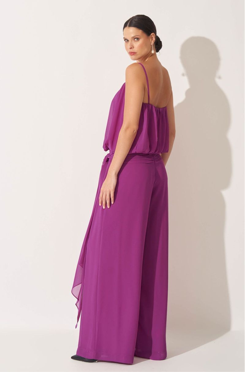 Macacão em chiffon que traz leveza e charme para a peça. Decote coração com alças finas e franzidos que dão um toque delicado. Blusê volumoso e cintura baixa que deixa o look moderno. Pala e faixa alongada no quadril com calça reta que deixa o visual leve e sofisticado. Modelo perfeito para coquetéis, aniversários e almoços especiais que pedem por looks mais despojados e elegantes. Detalhes da Peça: - Decote coração com franzidos - Alças finas - Blusê cintura baixa com volume - Faixa alongada no quadril - Calça reta - Zíper invisível nas costas #DicaAmiga: Experimente scarpins para alongar a silhueta e para um visual despojado prefira uma maxi bolsa estilosa para arrematar.