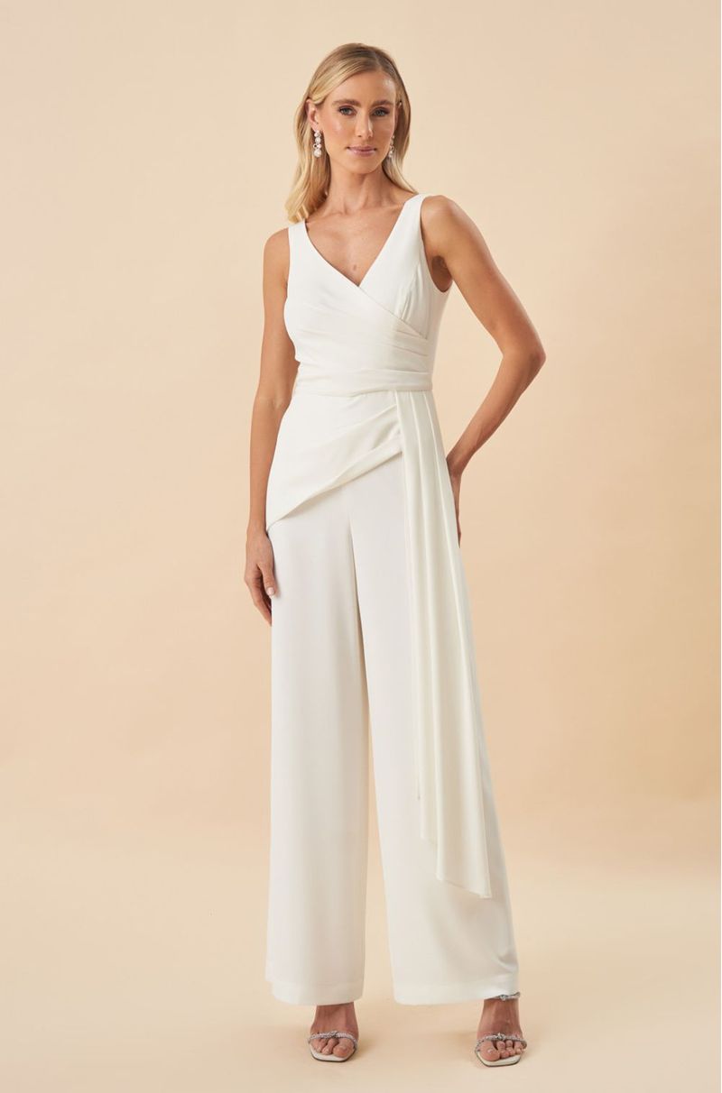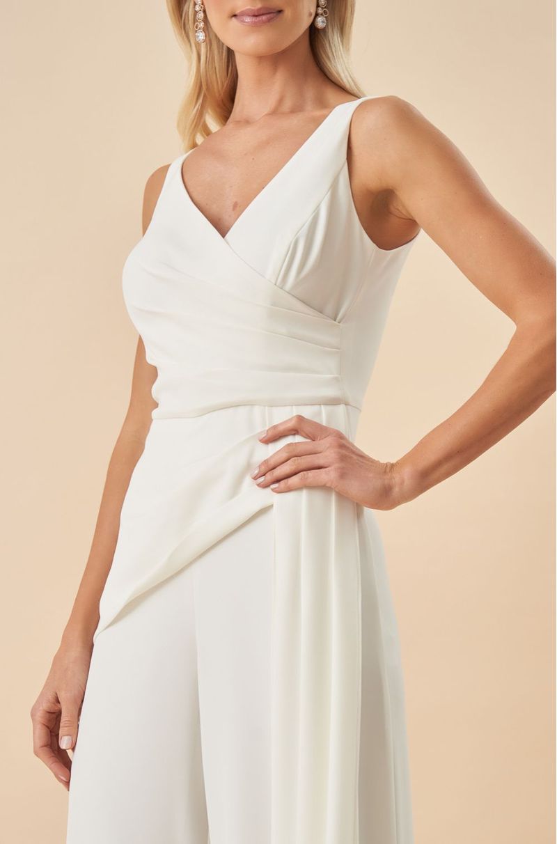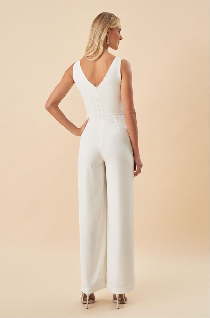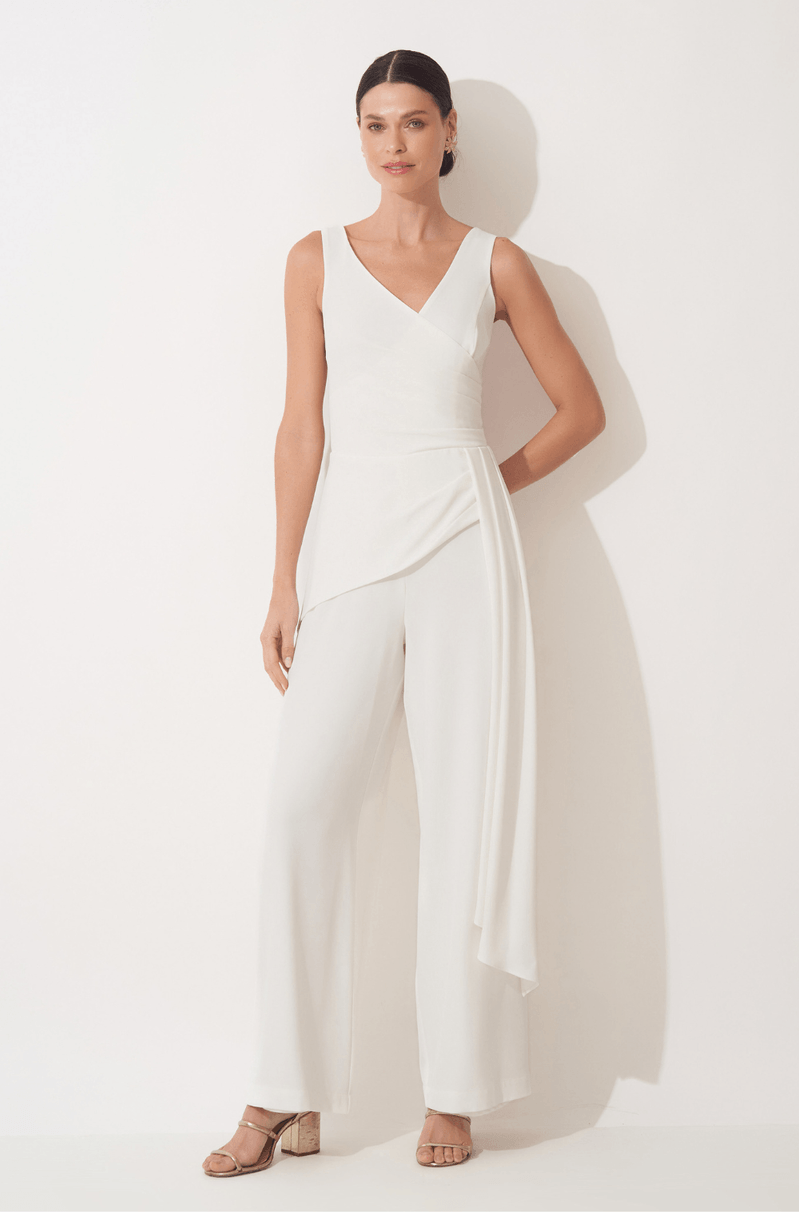 Este macacão em crepe encorpado une conforto e sofisticação, ideal para mulheres que buscam um look moderno e elegante. O decote V transpassado valoriza o colo com delicadeza, enquanto as pregas sutis na cintura modelam a silhueta com refinamento. A calça pantalona ganha um toque exclusivo com a sobreposição de saia frontal plissada, acompanhada por uma faixa fixa que cria movimento fluido e presença marcante. O fechamento em zíper invisível nas costas garante um acabamento impecável e confortável. Perfeito para festas noturnas, casamentos modernos e eventos sofisticados, este macacão é a escolha certa para quem deseja destacar estilo e elegância com uma peça versátil e contemporânea. Detalhes da peça: - Macacão em crepe encorpado - Decote V transpassado - Pregas na cintura - Calça pantalona ampla - Sobreposição de saia com pregas frontais - Faixa fixa caída - Zíper invisível nas costas #DicaAmiga: Aposte em maxi brincos e sandália de salto bloco para potencializar a sofisticação da peça.