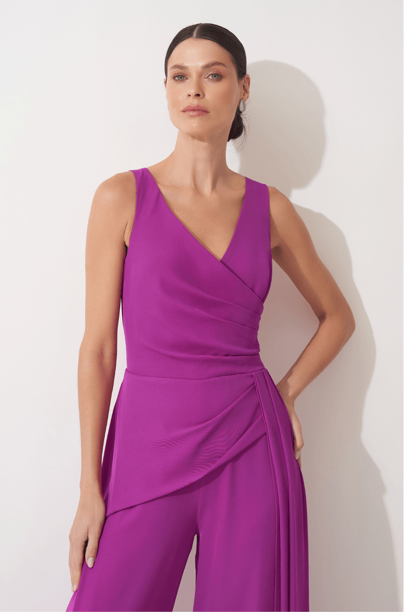 Este macacão em crepe encorpado une conforto e sofisticação, ideal para mulheres que buscam um look moderno e elegante. O decote V transpassado valoriza o colo com delicadeza, enquanto as pregas sutis na cintura modelam a silhueta com refinamento. A calça pantalona ganha um toque exclusivo com a sobreposição de saia frontal plissada, acompanhada por uma faixa fixa que cria movimento fluido e presença marcante. O fechamento em zíper invisível nas costas garante um acabamento impecável e confortável. Perfeito para festas noturnas, casamentos modernos e eventos sofisticados, este macacão é a escolha certa para quem deseja destacar estilo e elegância com uma peça versátil e contemporânea. Detalhes da peça: - Macacão em crepe encorpado - Decote V transpassado - Pregas na cintura - Calça pantalona ampla - Sobreposição de saia com pregas frontais - Faixa fixa caída - Zíper invisível nas costas #DicaAmiga: Aposte em maxi brincos e sandália de salto bloco para potencializar a sofisticação da peça.