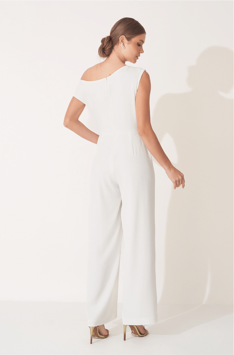 Combinando a elegância da alfaiataria com um design moderno e ousado, este macacão longo em crepe alfaiatado é a escolha ideal para mulheres que desejam fugir do óbvio em eventos sofisticados. Sua modelagem impecável une conforto e estilo, criando um visual poderoso, fluido e atual. O destaque da peça é o decote assimétrico, que equilibra uma manga curta com uma alça larga, realçado por um drapeado suave que valoriza o colo com sofisticação. A calça pantalona confere leveza e alonga visualmente a silhueta, enquanto a saia transpassada com pregas no quadril adiciona movimento e fluidez à composição, criando um efeito elegante e inusitado. O fechamento lateral com zíper invisível garante um caimento impecável e discreto. Indicado para: - Madrinhas modernas em casamentos contemporâneos - Convidadas de eventos formais que desejam elegância com um toque fashion - Jantares de gala, formaturas e festas noturnas - Produções impactantes sem o uso de vestidos tradicionais Detalhes da peça: - Tecido sofisticado em crepe de alfaiataria - Decote assimétrico com combinação de manga curta e alça larga - Drapeado sutil no busto, que valoriza o colo - Calça pantalona fluida, que alonga a silhueta - Saia transpassada com pregas, para toque de sofisticação e movimento - Zíper invisível lateral, garantindo ajuste perfeito #DicaDeEstilo: Para um look ainda mais imponente, aposte em sandálias de salto bloco, brincos longos e clutch estruturada. Finalize com uma maquiagem leve e iluminada para destacar o equilíbrio entre modernidade e elegância.