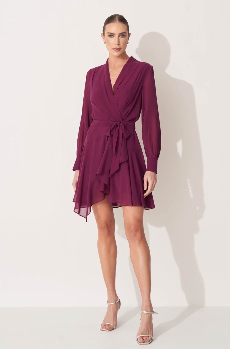 Eleve seu estilo com este vestido curto em chiffon, que une leveza e charme em uma peça sofisticada e moderna. O decote V transpassado, complementado por delicadas pregas no busto que formam um elegante efeito blusê, proporciona um visual feminino e requintado. A saia com corte levemente assimétrico, adornada por um cinto faixa que valoriza a silhueta, adiciona movimento e personalidade ao look. As mangas longas bufantes, feitas em tecido transparente com punhos ajustados e botões delicados, conferem um toque sutil de formalidade, tornando essa peça perfeita para diversas ocasiões. Versátil e charmosa, é ideal para aniversários, almoços especiais, encontros diurnos e eventos sociais que pedem um equilíbrio entre conforto e elegância. Características da peça: - Decote V transpassado com pregas no busto em efeito blusê - Mangas longas bufantes em tecido transparente com punhos e botões - Saia levemente assimétrica para movimento elegante - Cinto faixa que valoriza a cintura - Tecido chiffon leve e confortável Dica de estilo: Para compromissos diurnos, aposte em sapatilhas ou sandálias baixas combinadas com coque soltinho para um visual delicado e prático. Para eventos noturnos, escolha scarpins, batom vermelho marcante e cabelo solto modelado para um look sofisticado e impactante.