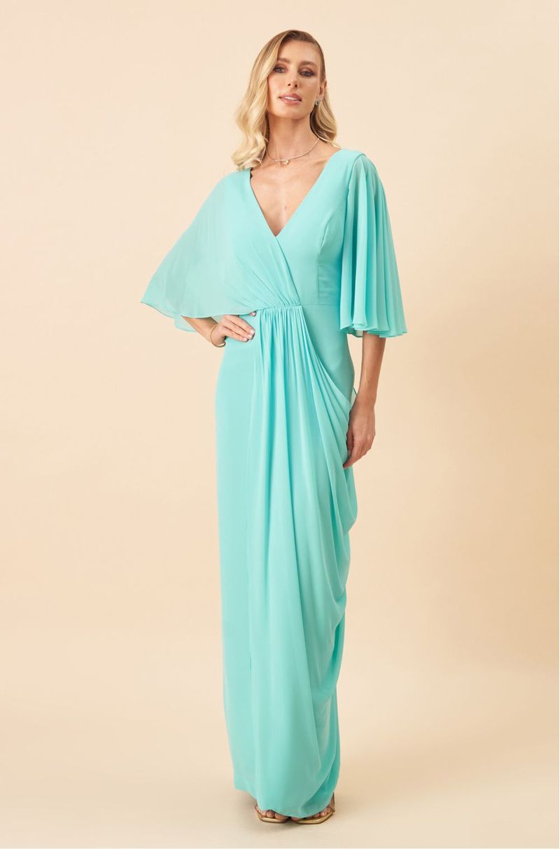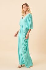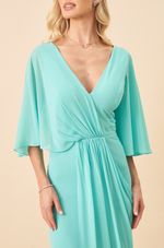 - Franzido que começa levemente no busto, desce no centro da cintura e cai formando um detalhe degagê na lateral do quadril na frente e nas costas;
