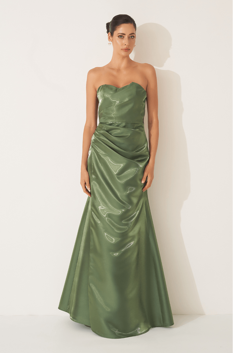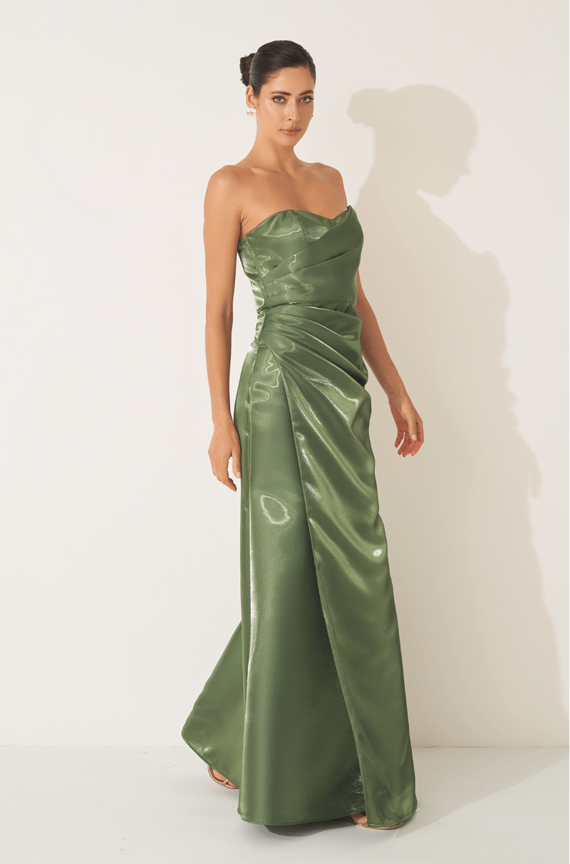 Com acabamento luxuoso e design escultural, este vestido longo em tecido zibeline glow é a escolha perfeita para eventos que pedem sofisticação máxima. Sua modelagem impecável valoriza a silhueta com elegância e modernidade, ideal para mulheres que desejam se destacar em ocasiões especiais. O busto estruturado estilo corset, sem alças, recebe um drapeado delicado sobreposto, criando um efeito visual refinado e extremamente feminino. A saia transpassada traz drapeados laterais estrategicamente posicionados para realçar as curvas com sutileza, finalizando em uma fenda frontal poderosa que adiciona sensualidade na medida certa. O fechamento em zíper invisível lateral garante caimento impecável e acabamento discreto. Detalhes da peça: - Tecido sofisticado zibeline glow, com leve brilho acetinado - Corset sem alças com drapeado sobreposto - Saia transpassada com drapeados laterais, que valorizam o corpo - Fenda frontal elegante e sensual - Zíper invisível lateral para acabamento limpo e ajuste perfeito #DicaDeAmiga: Complete o look com acessórios de impacto, como brincos longos ou clutch metalizada. Aposte em um salto alto elegante para alongar a silhueta e finalize com maquiagem iluminada e batom marcante para um visual de presença inesquecível.