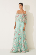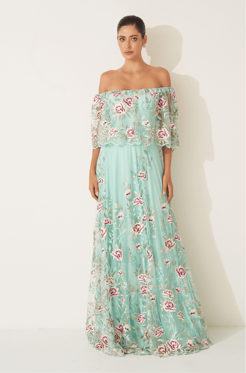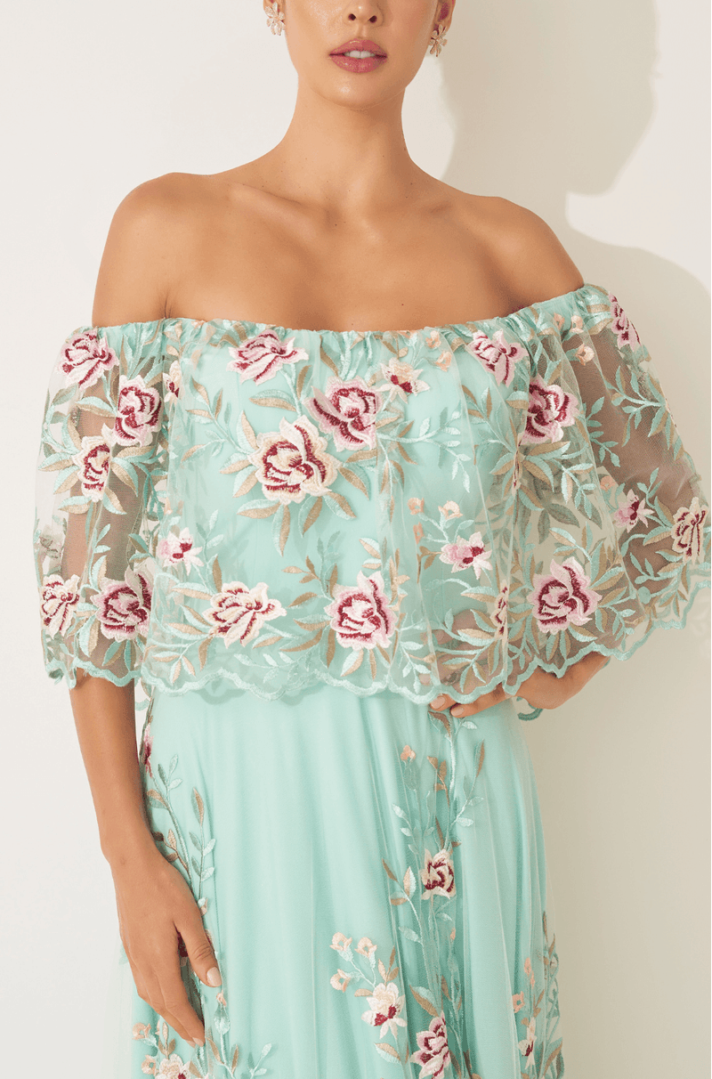Delicado e impactante na medida certa, este vestido longo em tule bordado traduz sofisticação com leveza e fluidez. A transparência sutil do tule combinada ao brilho discreto dos bordados cria um visual etéreo e encantador ¿ perfeito para ocasiões especiais. O decote ombro a ombro é emoldurado por um babado amplo que percorre toda a parte frontal até as costas, criando um efeito de capa leve e romântica. Esse detalhe adiciona movimento à parte superior do vestido e valoriza a região dos ombros e do colo com delicadeza. A saia rodada garante caimento fluido e balanço natural, ideal para destacar a elegância dos passos em momentos como entradas, valsas ou passagens por espaços abertos. O zíper invisível nas costas proporciona um acabamento limpo e sofisticado. Detalhes da peça: - Tule bordado - Decote ombro a ombro com babado tipo capa - Saia rodada - Zíper invisível nas costas - Comprimento longo #DicaAmiga: Aposte em cabelos presos ou semi-presos para destacar o decote e o detalhe de babado nas costas. Combine com brincos longos e clutch em tom neutro para um visual de conto de fadas moderno.