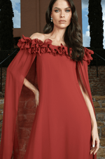 Em chiffon revela uma elegância etérea e contemporânea. O decote ombro a ombro é delicadamente adornado com pétalas de flor aplicadas a laser, criando um efeito artístico e feminino que emoldura o colo com sofisticação. A manga capa acrescenta fluidez e movimento, conferindo leveza e um charme dramático na medida certa. Com modelagem solta e caimento impecável, a peça acompanha o corpo de forma natural, proporcionando conforto e imponência ao caminhar. O fechamento em zíper invisível no centro das costas garante acabamento limpo, enquanto a delicada abertura em gota com botão personalizado finaliza o design com um toque exclusivo e refinado. Uma escolha perfeita para ocasiões especiais que pedem presença marcante e elegância atemporal. Detalhes da peça: - Confeccionado em chiffon - Decote ombro à ombro com pétalas de flor - Zíper invisível no centro das costas - Manga capa. #DicaAmiga: Como o decote já é protagonista, aposte em brincos mais delicados ou médios e dispense colares. Sandálias de salto fino ou bloco em tons neutros ajudam a alongar a silhueta e mantêm o visual elegante. Para o cabelo, um coque baixo ou preso lateral valoriza o ombro a ombro e deixa as pétalas em evidência ¿ simples, chic e certeiro