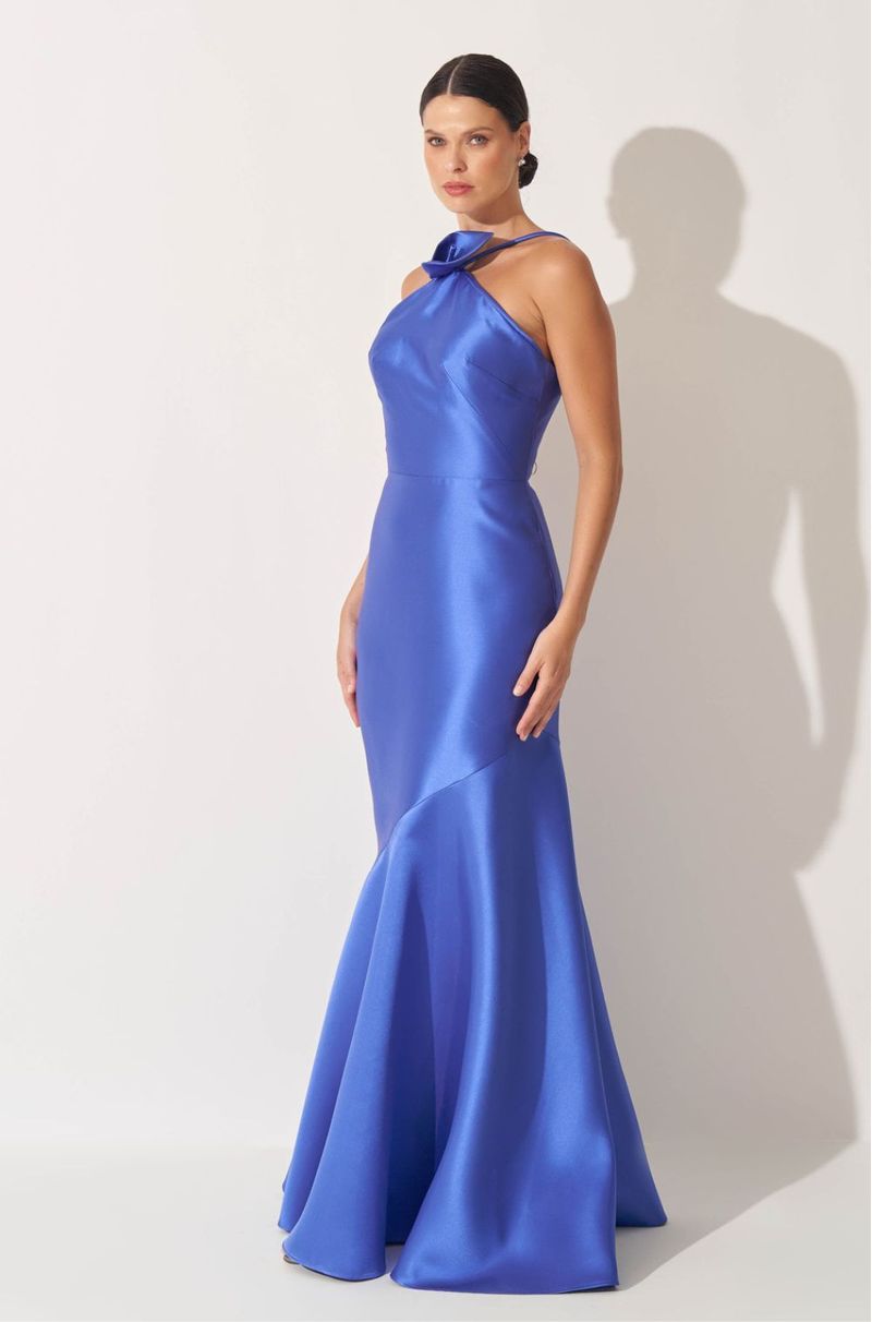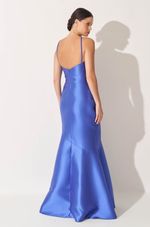 Com alça fina e decote nas costas que equilibram o visual com charme, a saia sereia com recorte diagonal proporciona um caimento impecável e movimento fluido. Uma escolha ideal para casamentos noturnos, formaturas e eventos de gala que pedem um look impactante e elegante.