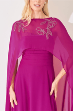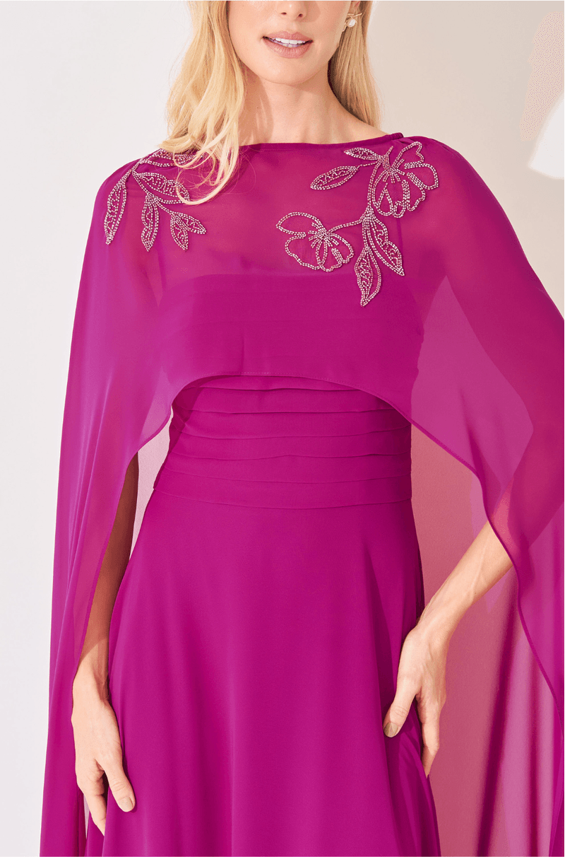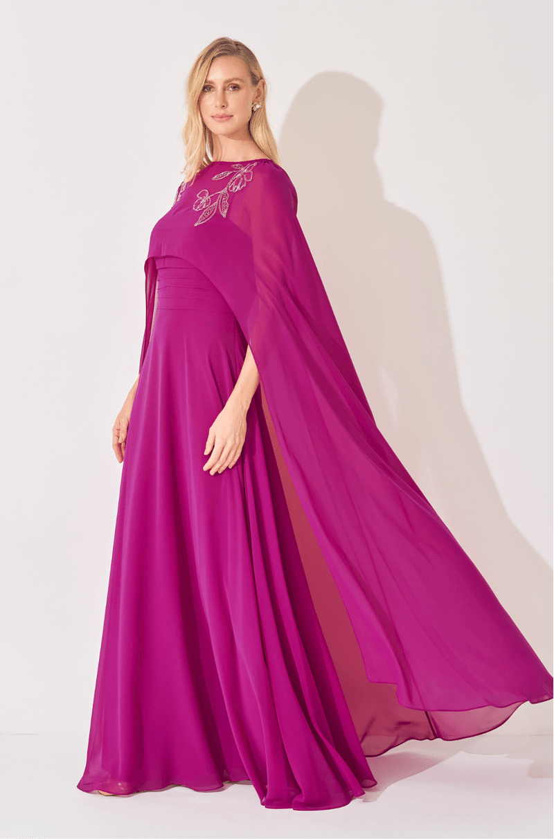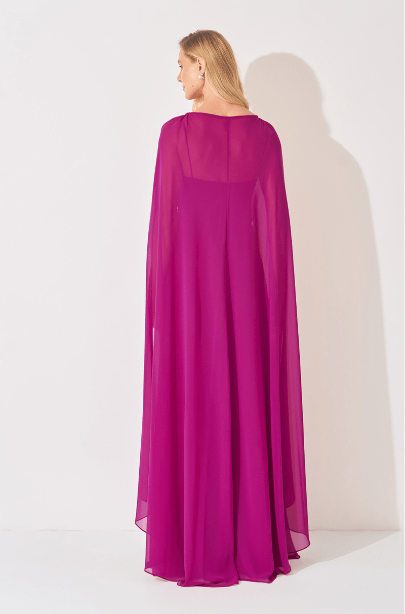 O decote reto com pregas no busto cria textura delicada e valoriza a parte superior do corpo, enquanto as alças finas mantêm a proposta feminina e minimalista. A saia solta e fluida garante movimento ao caminhar, trazendo leveza à silhueta. Nas costas, o zíper invisível assegura um acabamento limpo e sofisticado. A capa longa removível, com bordado fixo nos ombros, adiciona imponência e um toque fashion à composição, permitindo diferentes formas de uso. Um modelo ideal para madrinhas ou mães de noivos em cerimônias ou casamentos. Detalhes da peça: - Comprimento longo - Tecido chiffon leve e fluido - Decote reto com pregas no busto - Alças finas - Saia solta e fluida - Zíper invisível nas costas - Capa longa removível - Bordado fixo nos ombros #DicaAmiga Para cerimônias mais clássicas ou casamentos, a capa transforma o visual em uma produção imponente e sofisticada. Se quiser uma proposta mais leve, use o vestido sem a capa e valorize acessórios sutis.