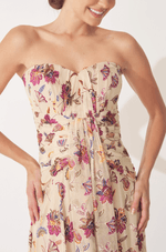 O tecido em viscose devorê de toque suave confere um caimento naturalmente elegante, enquanto a estampa adiciona charme e personalidade à peça. O destaque fica por conta do decote coração sem alças, que valoriza o colo de forma romântica e atemporal, ideal para mulheres que apreciam delicadeza com presença.