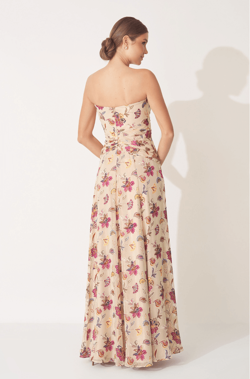 Combinando fluidez, feminilidade e um toque de modernidade, este vestido longo em viscose devorê estampada é a escolha ideal para eventos ao ar livre, como casamentos no campo ou na praia, além de ocasiões especiais que pedem sofisticação com leveza.