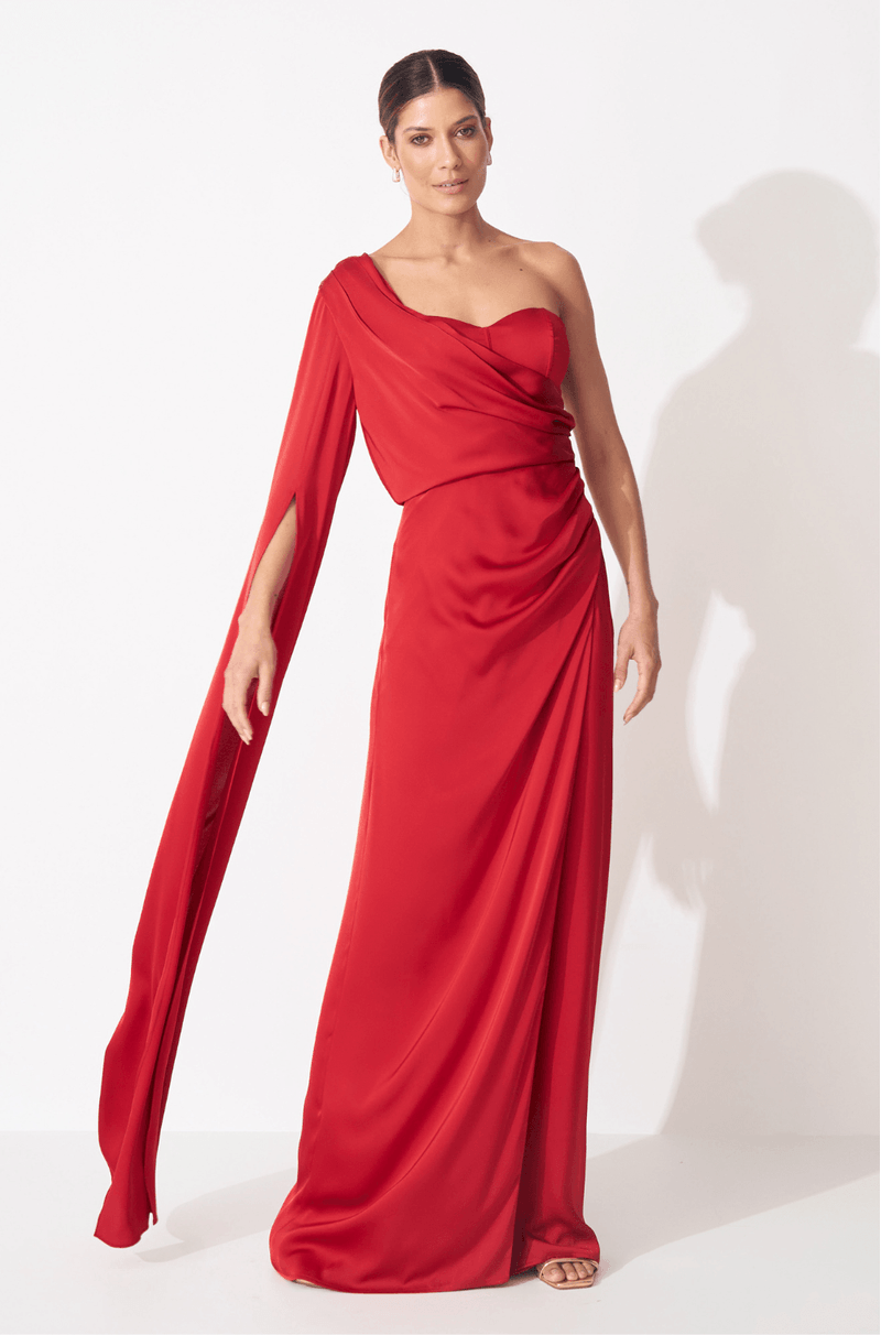 Este vestido longo em cetim destaca-se pela presença marcante e design exclusivo. O corte assimétrico nos ombros e manga cria um visual contemporâneo e elegante. O busto estruturado em corset com decote coração é sobreposto por um ombro único com degagê suave, que se estende em uma manga ampla e hiper alongada, conferindo imponência e sofisticação à peça. Os drapeados laterais valorizam a cintura e o quadril, trazendo textura e destaque à silhueta. A manga ampla com fenda lateral adiciona um toque dramático e fashionista, perfeito para quem busca um look impactante e cheio de personalidade. Ideal para eventos de gala, festas sofisticadas e ocasiões que exigem estilo e presença. Detalhes da Peça: - Corset com decote coração no busto - Ombro único com degagê assimétrico - Manga hiper alongada com fenda para movimento - Drapeados na cintura e quadril - Saia reta com sobressaia evasê #DicaAmiga: este vestido poderoso pede por uma make dramática, que destaque a boca ou olhos. Como o decote marca presença, deixe o colo livre e aposte em um brinco alongado, vai arrasar!