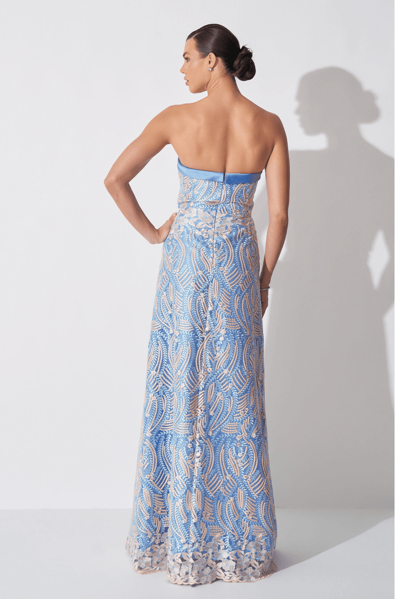 Com design autoral e acabamento primoroso, este vestido longo confeccionado em zibeline duplo une a sofisticação do tecido estruturado à delicadeza do tule bordado com aplicações artesanais. O resultado é uma peça elegante, imponente e repleta de personalidade, perfeita para ocasiões formais que exigem um visual de destaque. O decote sem alças é valorizado por um exclusivo detalhe de pala bordada à frente e nas costas, criando um contraste inusitado e elegante que eleva o design da peça. A modelagem da saia em formato A equilibra o visual e proporciona movimento fluido ao caminhar, garantindo conforto e leveza com um toque clássico. Perfeito para eventos noturnos, festas formais ou ocasiões com dress code black-tie, este vestido é uma escolha sofisticada para madrinhas, convidadas especiais ou formandas que desejam um look memorável e refinado. Detalhes da peça: - Vestido longo - Zibeline duplo com tule bordado - Decote sem alças com detalhe de palha - Detalhe de pala frontal e nas costas - Saia em formato A - Zíper invisível no centro das costas #DicaAmiga: Combine com clutch estruturada e brincos brilhantes para valorizar o toque artesanal do bordado. Um coque baixo ou cabelo preso lateralmente evidenciam ainda mais o decote e os detalhes das costas.