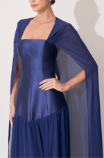 Descubra a perfeita combinação entre estrutura e fluidez neste vestido longo em zibeline com chiffon, projetado para valorizar a silhueta com elegância. O decote sem alças realça o colo com delicadeza, enquanto os recortes verticais estilo corset na cintura afinam visualmente a forma, criando uma silhueta harmoniosa até o quadril.