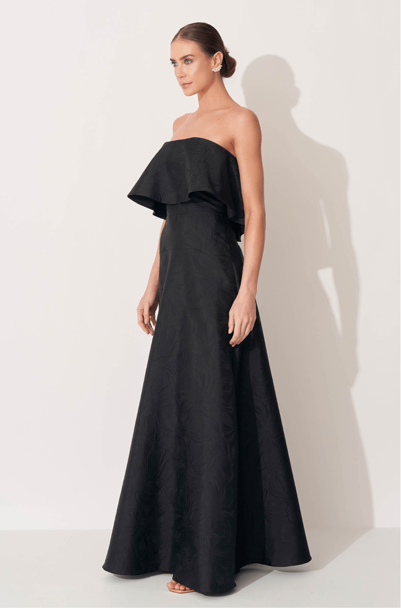 Este vestido longo em jacquard destaca-se pela textura rica e estrutura elegante, ideal para ocasiões que exigem presença marcante. O modelo sem alças valoriza o colo com delicadeza, enquanto a camada sobreposta evasê adiciona um toque feminino e fluido ao design. A peça é ajustada até o quadril, com recorte arredondado que realça a silhueta, seguindo para uma saia longa evasê que traz leveza e movimento. Um vestido imponente e charmoso, perfeito para casamentos, eventos black tie e celebrações formais que pedem sofisticação. Detalhes da Peça: - Confeccionado em jacquard - Decote sem alças com camada sobreposta evasê - Ajustado na cintura - Recorte arredondado no quadril - Saia evasê #DicaAmiga: Aposte em penteados soltos com ondas para uma produção ainda mais glamurosa e experimente combinar com um colar ou gargantilha delicados.