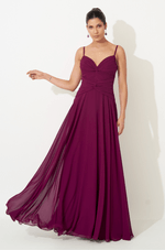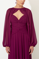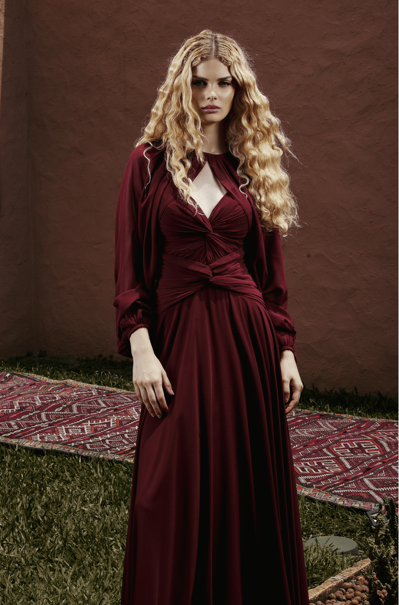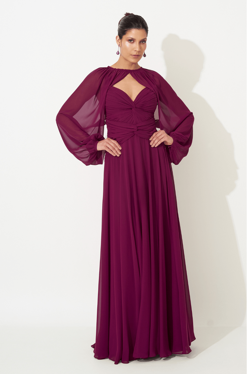 A saia longa, fluída e rodada traz movimento e leveza ao caminhar, criando um visual etéreo e elegante ¿ perfeito para ocasiões especiais. O grande destaque fica por conta da manga bufante removível em chiffon, que adiciona um toque romântico e versátil ao look, permitindo transformar o vestido conforme o estilo desejado para o evento.