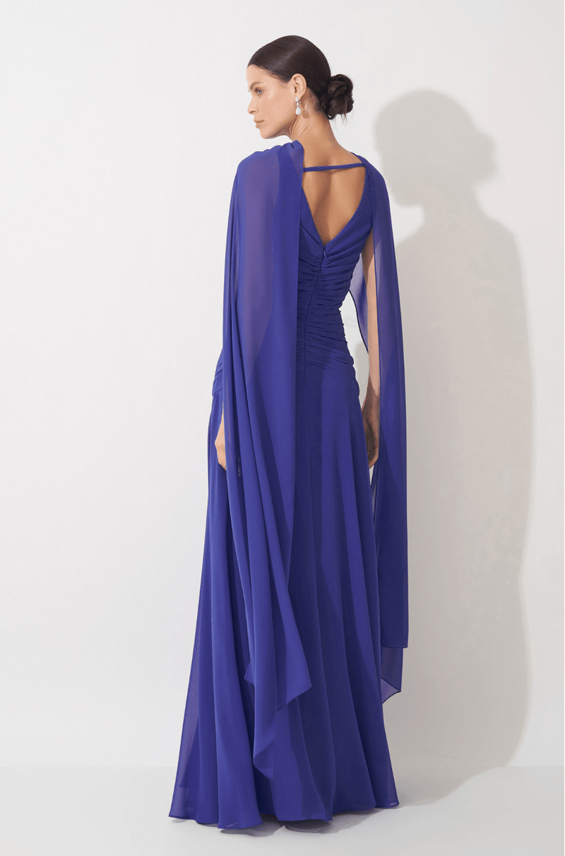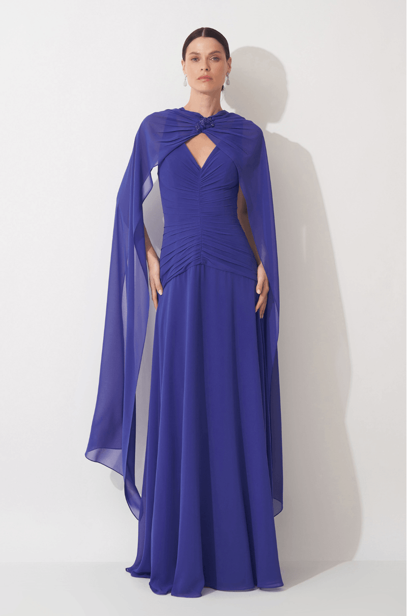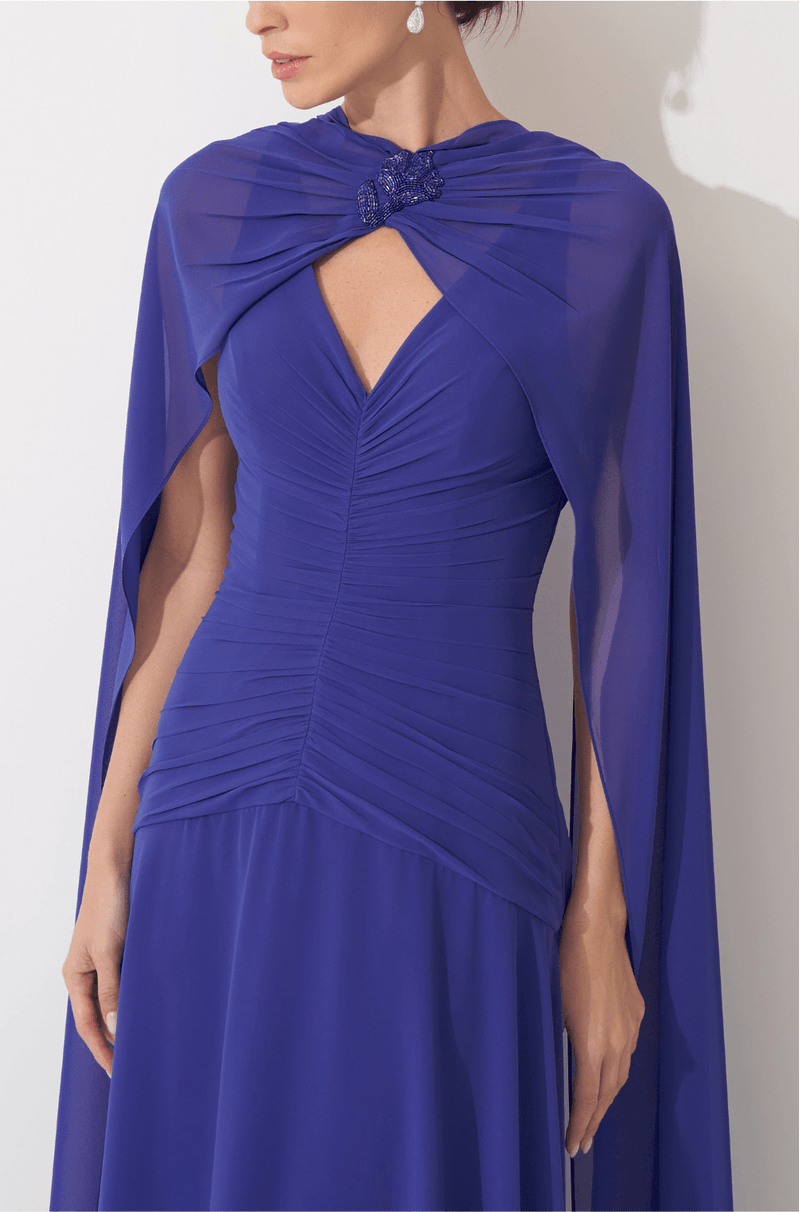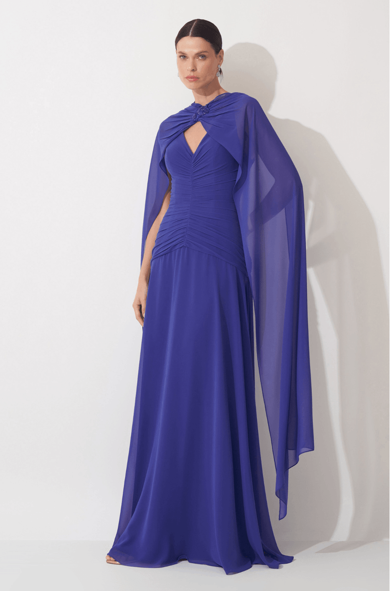 Vestido longo em chiffon que adiciona transparência e leveza. Decote V com franzidos centralizados até a altura do quadril que trazem destaque e textura. Saia ampla e esvoaçante que garante a foto perfeita. Capa em chiffon, com bordado floral e abertura nas costas que complementa o visual com riqueza. Peça que entrega sofisticação e perfeita para casamento como convidada, madrinha ou mãe de noivo. Detalhes da Peça: - Decote V - Franzidos centralizados até o quadril - Saia ampla esvoaçante - Capa detalhe de bordado e aberta nas costas #DicaAmiga: Prefira por brincos pequenos e delicados para trazer harmonia ao look. Aposte em clutch e sapatos lisos minimalistas para um visual sofisticado.
