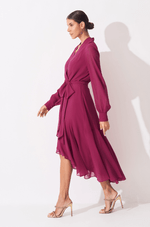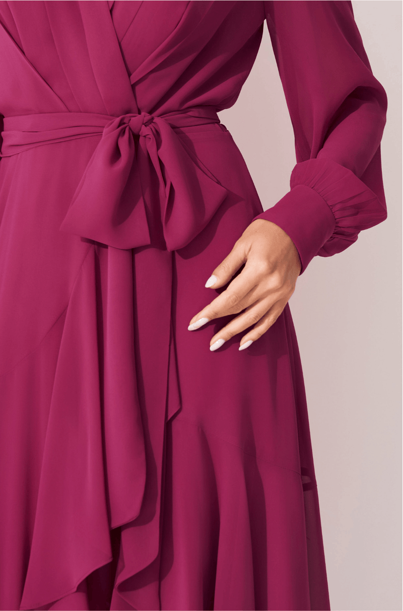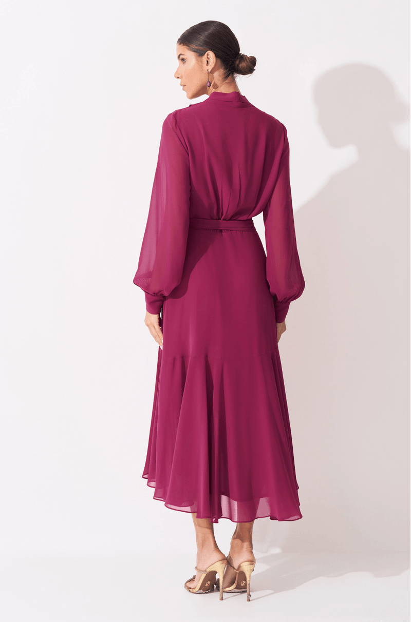 Vestido midi em chiffon que traz transparência e leveza. Decote V transpassado com pregas nos ombros e gola criando lindo caimento. As mangas longas bufantes com punho trazem um toque de transparência delicada. Saia midi com transpasse e babado assimétrico trazendo movimento fluido ao caminhar. É o modelo versátil para usar em compromissos diurnos ou noturnos, apenas mudando os acessórios. Detalhes da peça: - Decote V com transpasse - Pregas nos ombros e gola - Mangas longas bufantes com punho - Saia transpassada - Babados assimétricos na saia #DicaAmiga: Para um look diurno aposte em sapatilhas ou sandálias delicadas e rabo de cavalo alto para criar um visual feminino e prático. Já para noite, pode apostar em um batom marcante, salto alto e acessórios brilhantes.