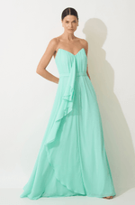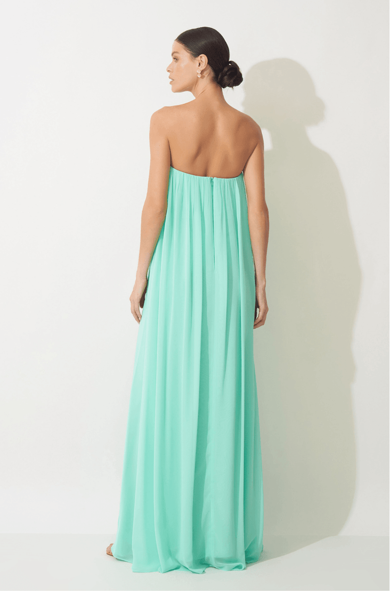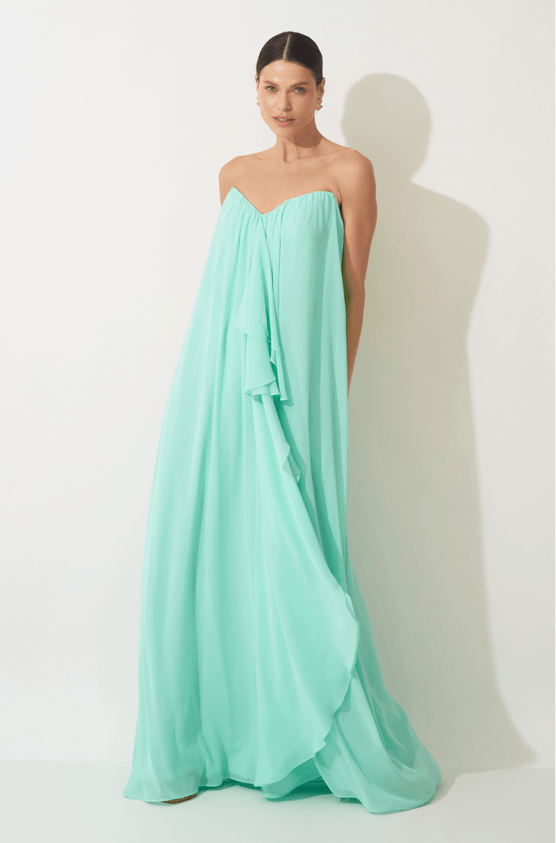 Este vestido longo em chiffon oferece leveza e movimento incomparáveis, ideal para quem busca conforto e elegância em uma única peça. O decote V sem alças apresenta franzidos delicados e babado central estilo cascata, que confere um balanço fluido e sofisticado ao design. Com shape amplo, a peça acompanha um cinto removível que passa por trás do babado, marcando a silhueta e realçando este detalhe exclusivo. Uma escolha perfeita para madrinhas e convidadas de casamento, especialmente em cerimônias ao ar livre que pedem um visual leve e elegante. Detalhes da peça: - Decote V sem alças - Franzidos no decote - Babados em cascata no centro - Shape amplo - Cinto removível que passa por trás do babado #DicaAmiga: Experimente penteados presos e brincos marcantes com o colo livre para criar um visual sofisticado. Equilibre a produção com uma clutch estruturada e marcante.