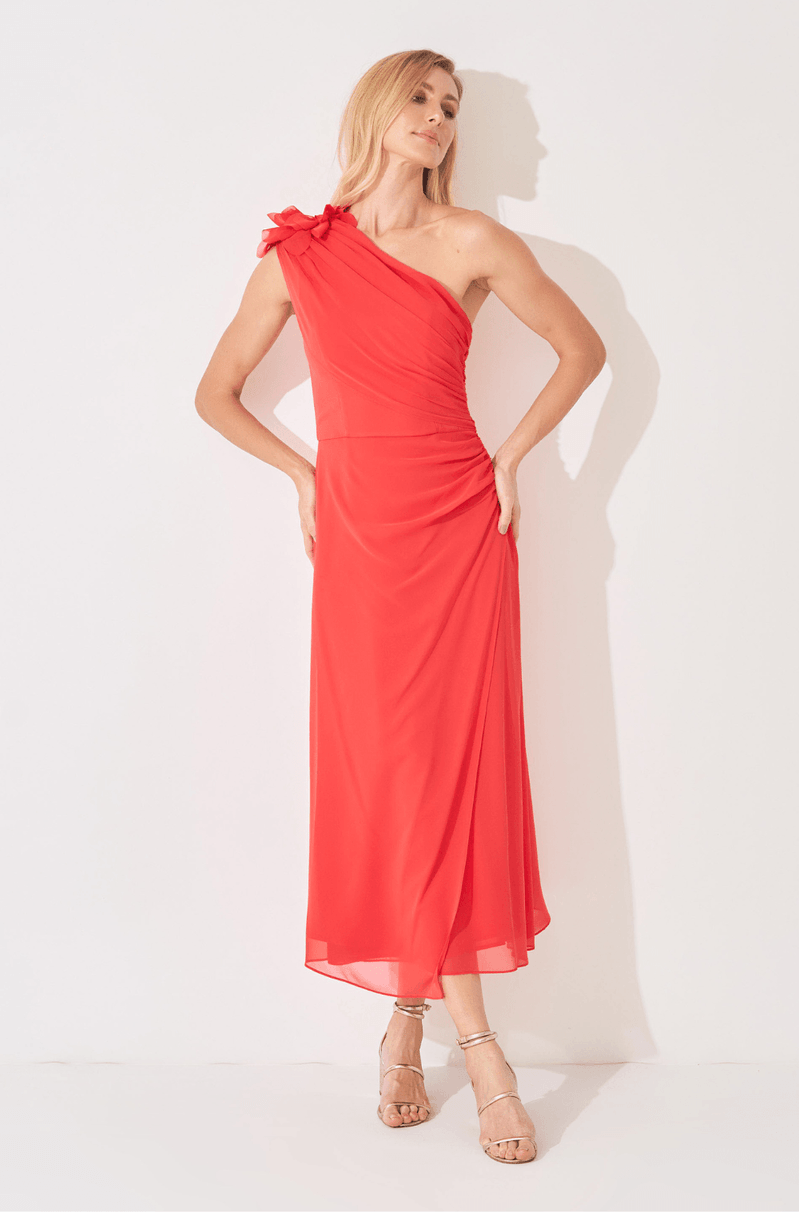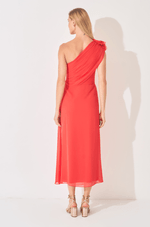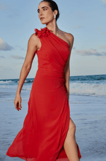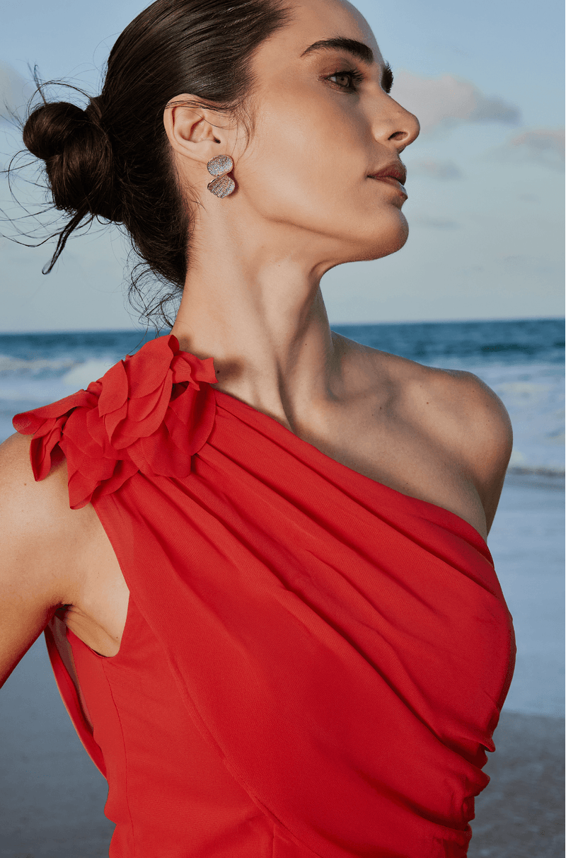 Com leveza, feminilidade e um toque artesanal, este vestido midi em chiffon é a escolha perfeita para eventos especiais durante o dia ou ao ar livre. O tecido leve e esvoaçante confere movimento delicado à peça, enquanto os detalhes cuidadosamente elaborados elevam o visual com sofisticação. O design de um ombro só é adornado por pétalas delicadas cortadas a laser, criando um efeito visual romântico e exclusivo. O busto drapeado valoriza a silhueta com sutileza, enquanto a saia transpassada com pregas laterais adiciona fluidez e charme a cada passo. O fechamento por zíper invisível na lateral garante um acabamento limpo e discreto, mantendo o foco nos detalhes que tornam esta peça única. Detalhes da peça: - Tecido chiffon leve e fluido - Decote de um ombro só com pétalas cortadas a laser - Drapeado no busto - Saia transpassada com drapeado lateral - Zíper invisível na lateral #DicaAmiga: Aposte em sandálias de tiras finas e brincos longos para um visual etéreo, ou combine com salto bloco e clutch colorida para um toque moderno e descontraído.