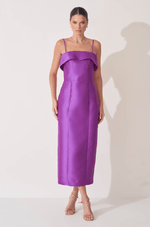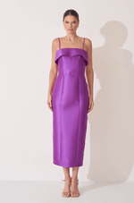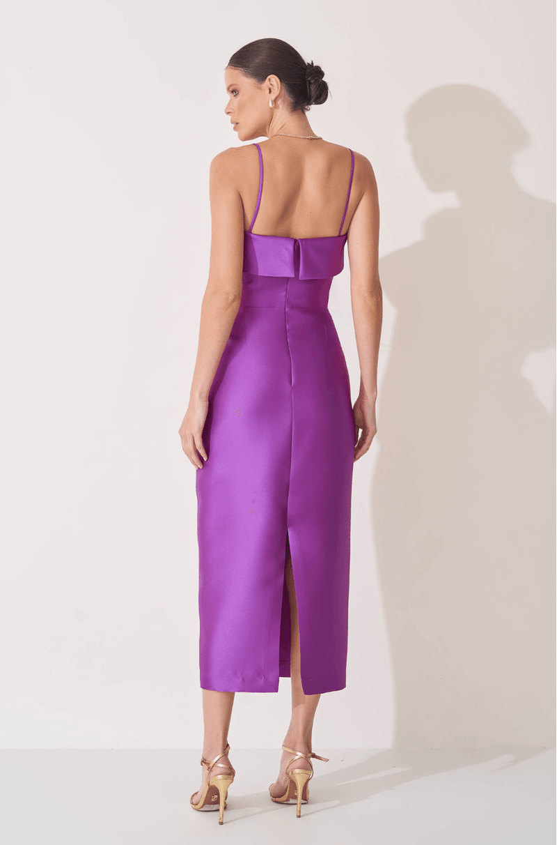Para quem busca elegância atemporal com um toque de estrutura, este vestido midi em tecido zibeline é a escolha perfeita. O zibeline confere firmeza à peça e um brilho sutil e refinado, ideal para compor looks formais com presença marcante.