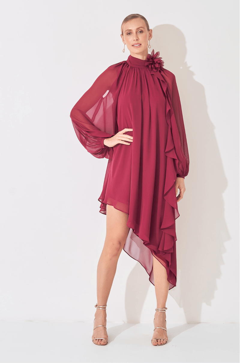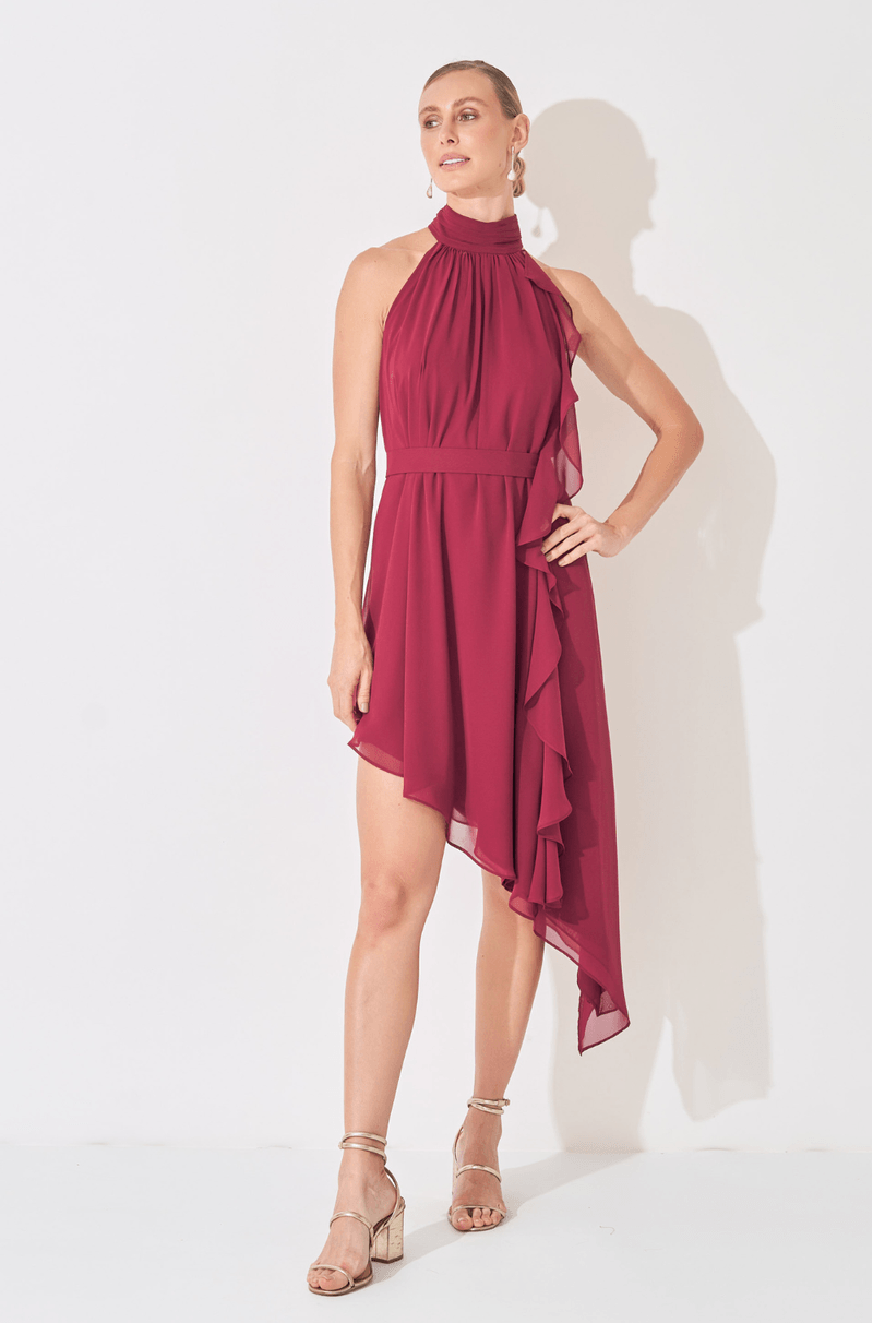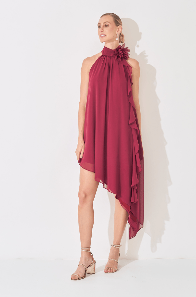 Com design leve e movimento marcante, este vestido traduz sofisticação com um toque fashion e feminino. A proposta de decote frente única com gola alta levemente franzida cria um visual elegante e alonga a silhueta, enquanto o botão personalizado nas costas adiciona um acabamento exclusivo e refinado. O destaque da peça fica por conta do babado que parte do decote até a barra, formando delicados canudos, que conferem fluidez, textura e movimento ao vestido. A modelagem solta garante conforto e leveza, equilibrando perfeitamente com a saia assimétrica, que revela a pele de forma sutil e moderna. Nas costas, a gota delicada reforça a feminilidade do design. Para ainda mais versatilidade, o vestido conta com cinto e mangas bufantes removíveis, permitindo diferentes propostas de styling ¿ do visual mais romântico ao mais clean. Detalhes da Peça - Vestido midi com saia assimétrica - Decote frente única - Gola alta levemente franzida - Botão personalizado nas costas - Babado contínuo do decote à barra formando canudos - Modelagem solta - Gota nas costas - Manga bufante removível - Cinto removível - Caimento leve e fluido #DicaAmiga: Esse vestido é perfeito para festas ao ar livre, mini weddings, coquetéis ou eventos noturnos mais descontraídos. Com as mangas e o cinto, o look fica mais elegante e elaborado; sem eles, a proposta fica mais leve e moderna. Combine com sandálias delicadas e brincos alongados para valorizar o decote e o movimento da peça.